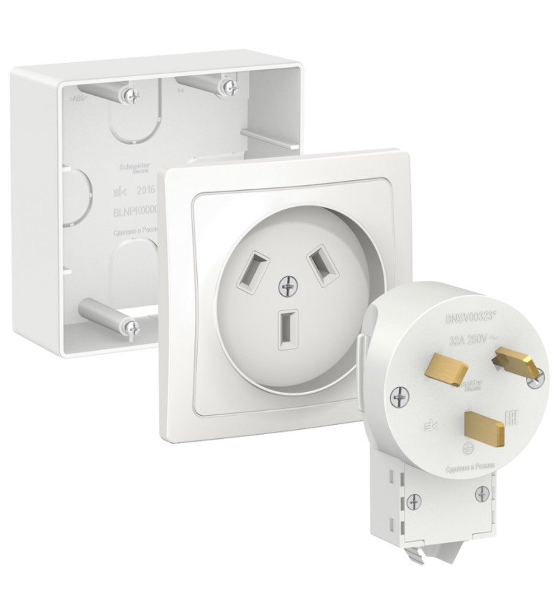 - Тип комплекта: Силовой комплект (розетка + вилка + подъемная коробка)