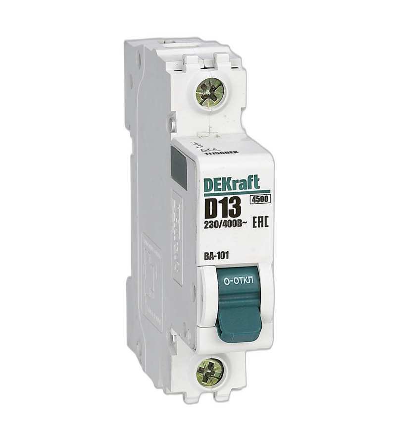 Автоматический выключатель ВА-101 1P 13А D 4.5кА, Dekraft предназначен для надёжной защиты электрических цепей от перегрузок и коротких замыканий в бытовых и промышленных электрических установках. Это однофазный однополюсный аппарат с номинальным током 13 ампер, который эффективно отключает электропитание при превышении допустимых значений тока, предотвращая повреждения проводки и электроприборов.