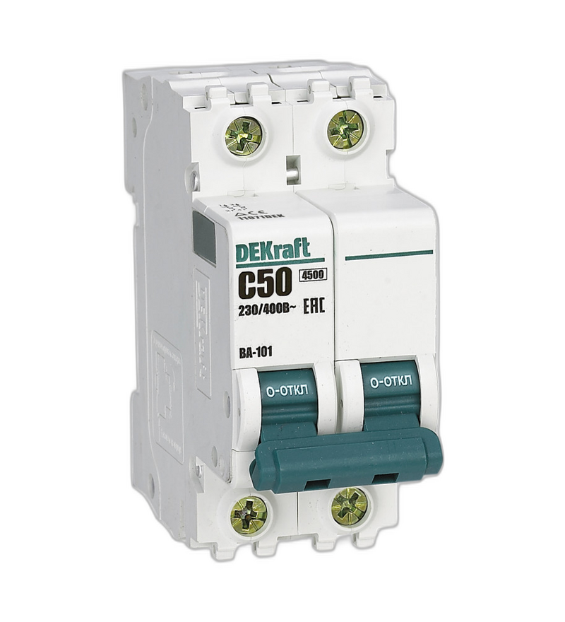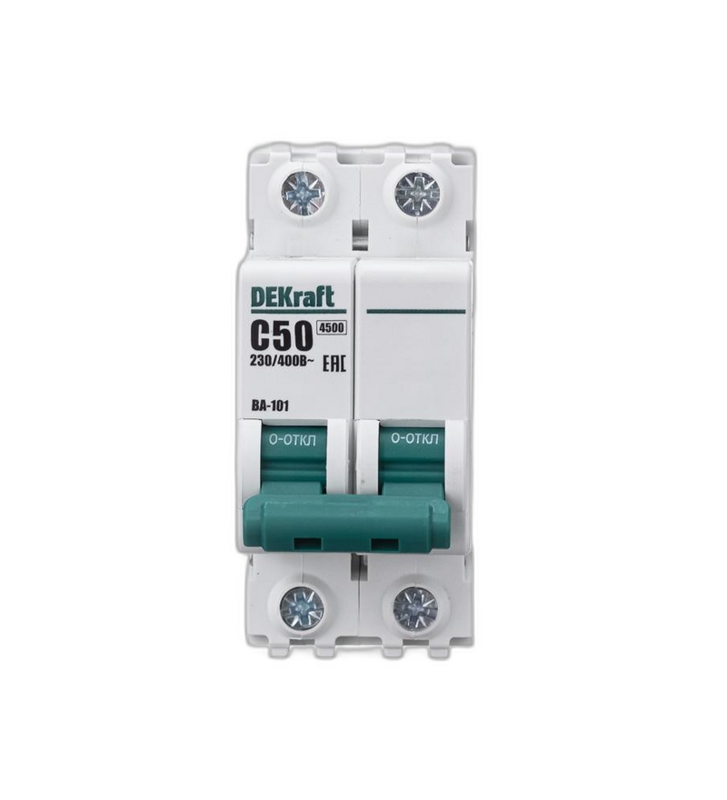 Купить автоматический выключатель ВА-101 2P 50А C 4.5кА Dekraft в Минске с доставкой по всей Беларуси удобно в нашем интернет-магазине, расположенном в ТЦ Ленинград. В наличии — оригинальный, сертифицированный продукт, который обеспечит стабильную защиту вашей электросети.
