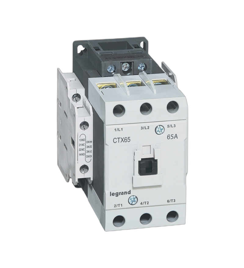 Контактор Legrand CTX3 65 3P 65A (AC-3), Uк=48VDC, 2NO+2NC вспомогательных контакта предназначен для эффективного управления электрическими нагрузками в различных системах автоматизации и электроснабжения. Этот трёхполюсный контактор рассчитан на номинальный ток 65А в режиме AC-3, что обеспечивает надёжное коммутации асинхронных электродвигателей и других силовых нагрузок.