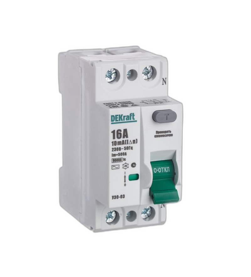 Устройство защитного отключения ВДТ 2P 16А 10мА тип AC УЗО-03 6кА, Dekraft предназначено для обеспечения безопасности электрических сетей и защиты людей от поражения электрическим током. Данный УЗО (устройство защитного отключения) реагирует на дифференциальный ток утечки и мгновенно отключает питание при превышении порога в 10 мА, что существенно снижает риск электротравмы и предотвращает возгорания вследствие токов утечки.
