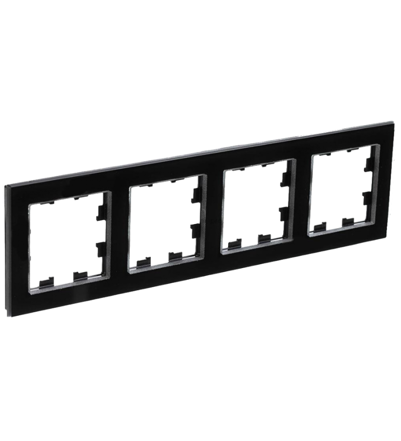 Рамка рассчитана на установку до четырёх модулей, что позволяет компактно и аккуратно объединить несколько механических и электронных устройств управления освещением, розеток и других элементов. Черный цвет подчёркивает строгость и глубину дизайна, выгодно контрастирует с большинством цветов стен и отлично вписывается в интерьер ТЦ, офисов и жилых квартир Минска и всей Беларуси.