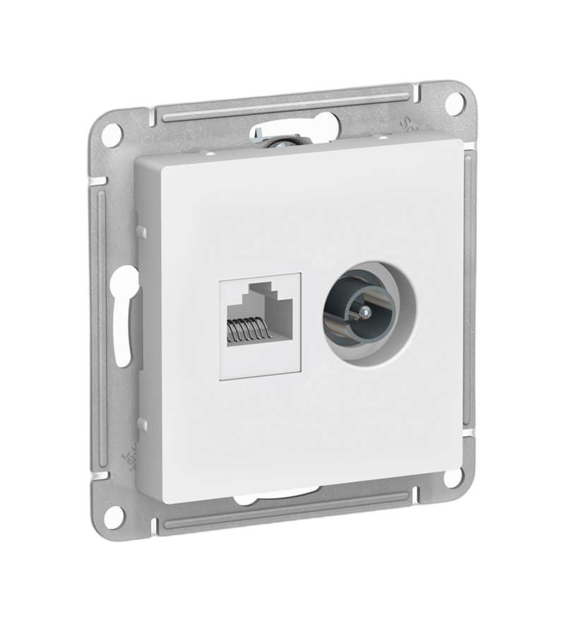 Купить двойную розетку ТВ + RJ45 ATLASDESIGN, кат. 5Е, белую можно с доставкой по Беларуси. В наличии оригинальный продукт, совместимый с современными системами домашней и офисной проводки.
