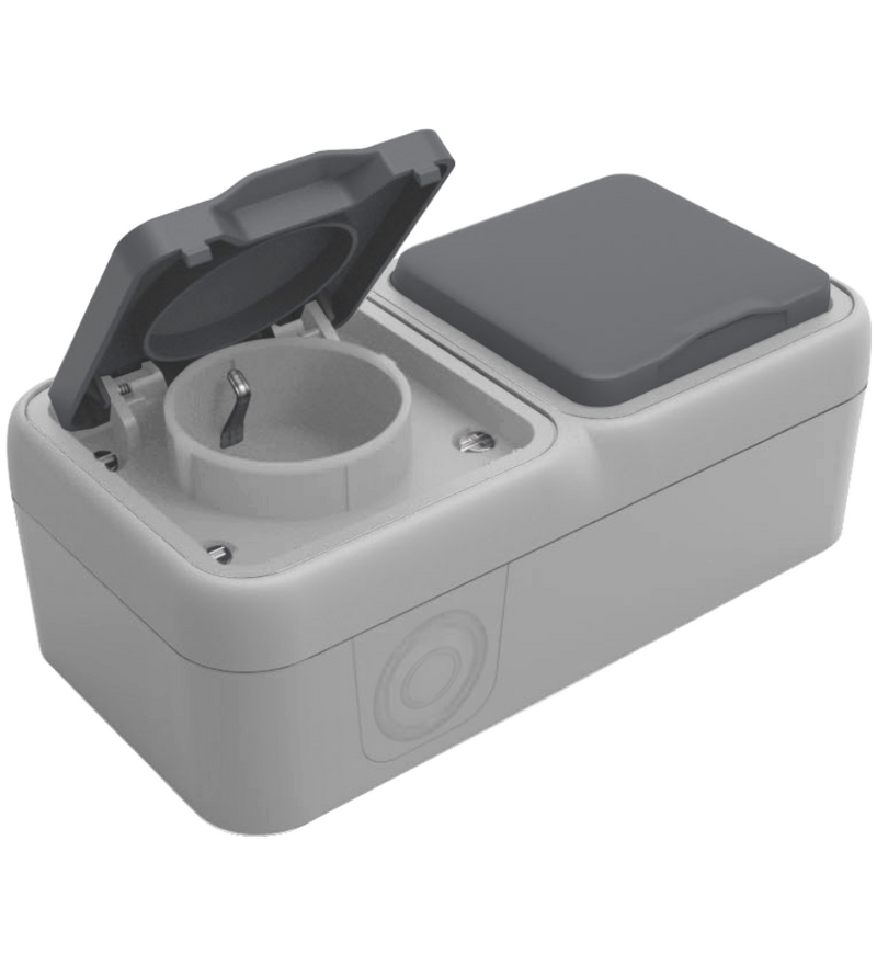 Розетка OSPEL Donel W55 2-я с защитной крышкой, 2К+З, накладная, серая, IP55, серия DIP55 предназначена для надежного подключения электроприборов в помещениях с повышенной влажностью и запыленностью, а также на улице. Благодаря защитной крышке и степени защиты IP55 устройство эффективно предотвращает попадание влаги и пыли внутрь механизма, обеспечивая долговечность и безопасность эксплуатации.