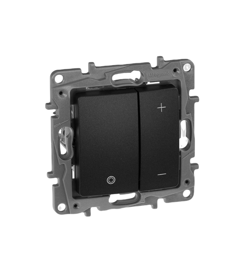 Кнопочный механизм обеспечивает плавное изменение яркости света, создавая комфортную атмосферу и позволяя экономить электроэнергию. Устройство легко устанавливается в стандартные электроустановочные коробки, а надежные материалы гарантируют долгий срок службы. Светорегулятор Etika 400Вт (антрацит) отлично подходит для использования в жилых помещениях, кафе, отелях и офисах, где важна качественная настройка освещения.