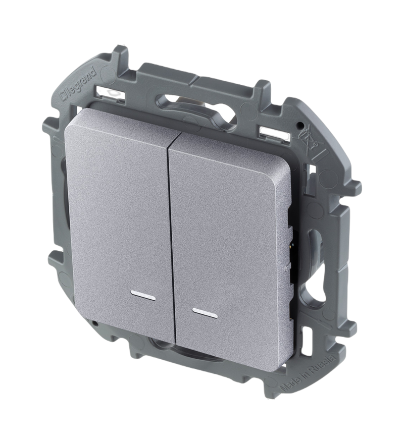 Inspiria - Выключатель двухклавишный с подсветкой (алюминий) в Минске, ТЦ Ленинград