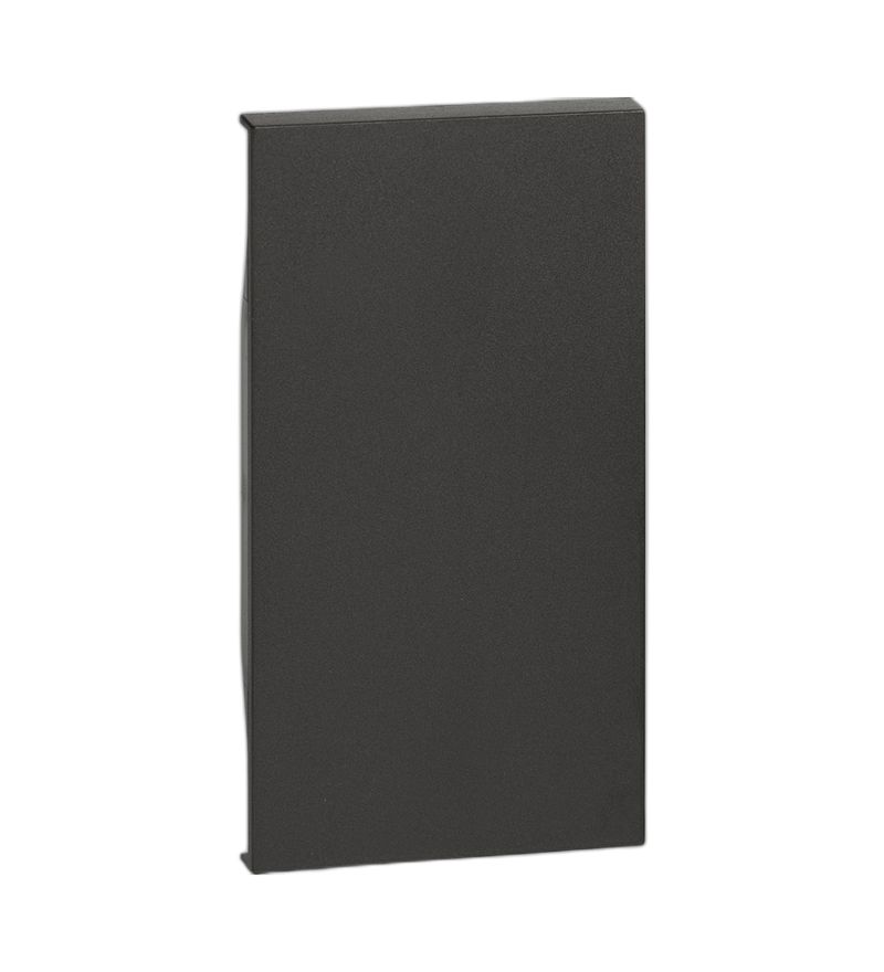 Матовая поверхность предотвращает блики и отпечатки пальцев, а глубокий чёрный цвет хорошо сочетается с рамками аналогичного оттенка, создавая единый визуальный блок. Элемент особенно актуален в проектах с запасом по модулям или в конфигурациях, рассчитанных на будущее расширение.