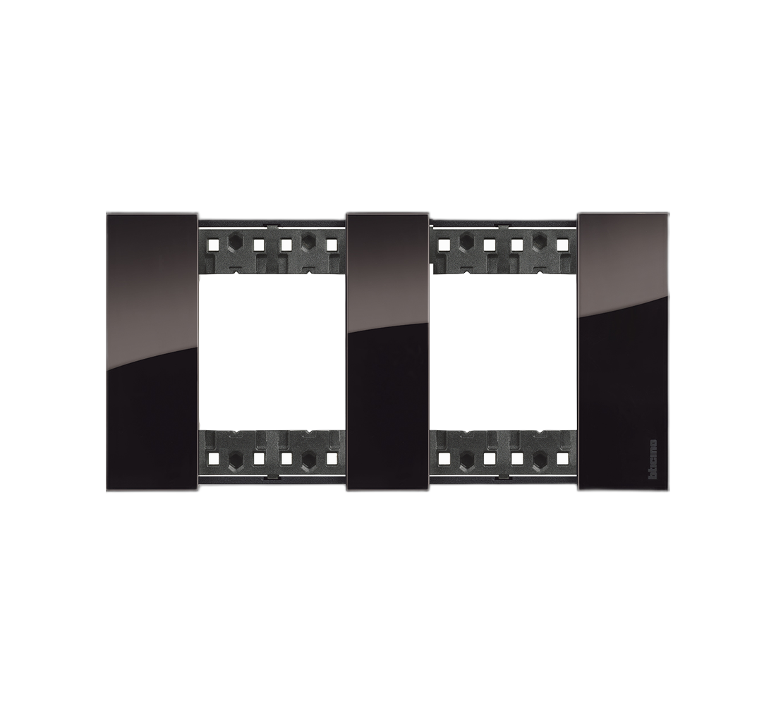 Декоративная рамка 2x2M Bticino Living Now в цвете «Ночь» — лицевая панель на два поста, рассчитанная на четыре модуля (2+2). Предназначена для горизонтальной или вертикальной установки без переходников и дополнительных рамок.