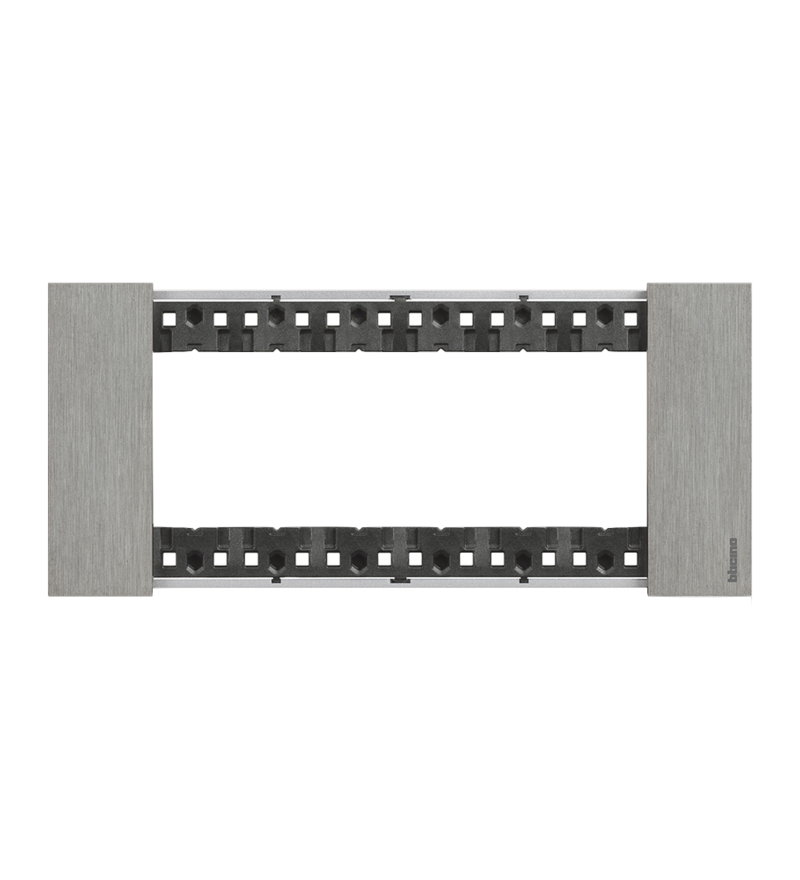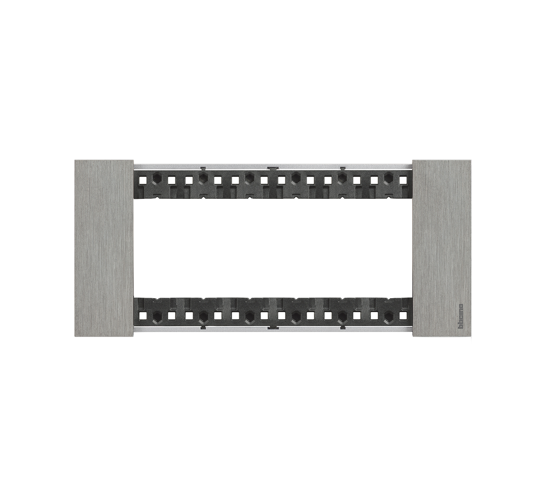 Рамка 6М Bticino из серии Living Now выполнена в отделке «сталь» — сдержанный оттенок с металлическим отблеском подойдёт как для минималистичных, так и для индустриальных интерьеров. Используется для сборки блоков из шести модулей: розеток, выключателей, сетевых, ТВ и других механизмов.