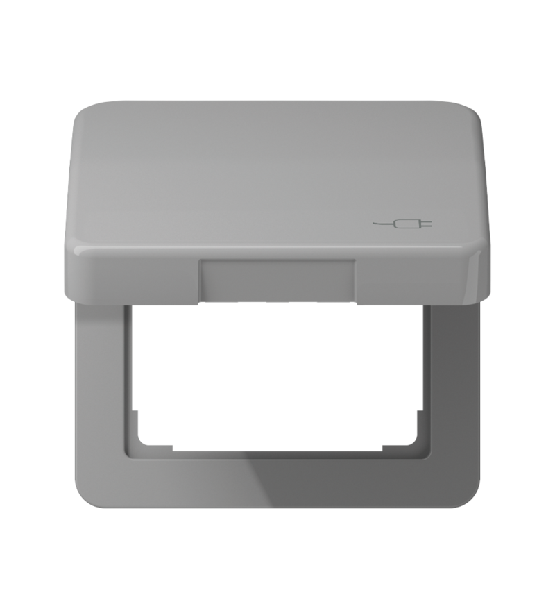 Рамка с подпружиненной крышкой для механизмов JUNG 50x50 с символом "Вилка", Арт: CD590KLSOCGR — стильное и функциональное решение для защиты и декорирования электрических механизмов размером 50 на 50 мм. Данная рамка изготовлена немецким производителем JUNG, который славится высоким качеством электротехнической продукции и современным дизайном.