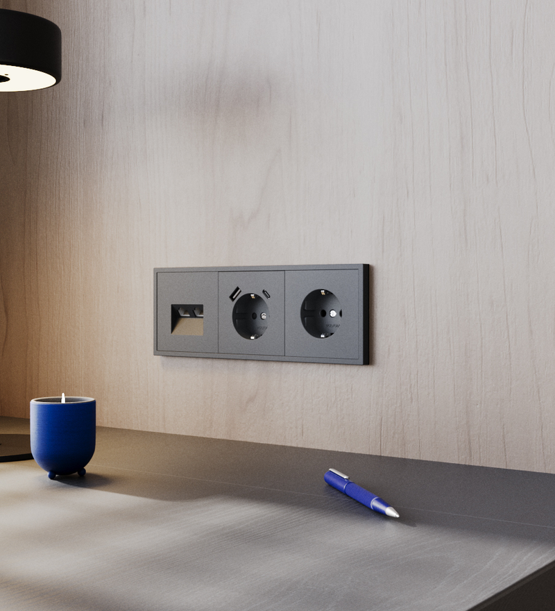 Современные технологии требуют надежного и быстрого интернет-подключения. Компьютерная розетка VOLTUM S70 в цвете графит оснащена двумя разъемами RJ45 категории 6, что гарантирует стабильное соединение без потерь скорости и помех.