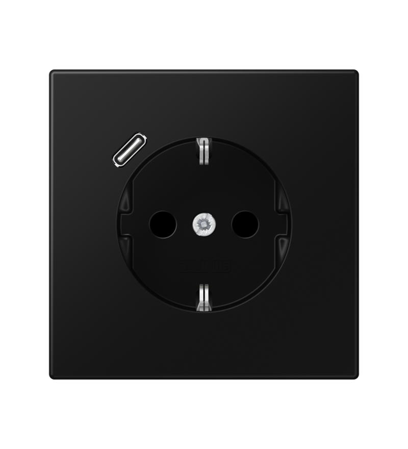Розетка SCHUKO® с USB-зарядным устройством, тип С, термопласт, черный матовый от JUNG — это современное и универсальное электроприборное решение для домов и офисов, оборудованных под стандарт европейской розетки SCHUKO. Благодаря встроенному USB-порту тип C, данная модель позволяет не только подключать электроприборы с вилкой SCHUKO, но и удобно заряжать мобильные устройства без дополнительного адаптера.