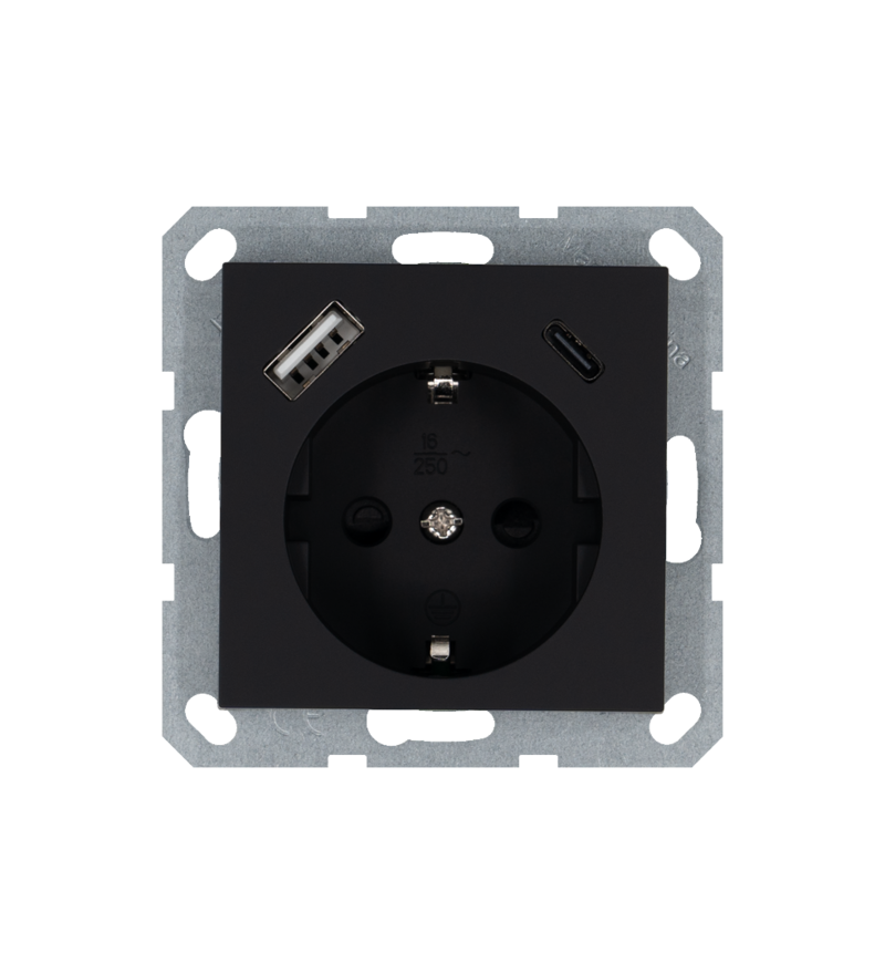 - Тип изделия: Розетка SCHUKO® с USB-интерфейсом (тип A + тип C)