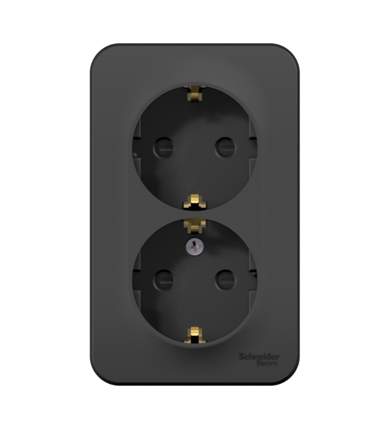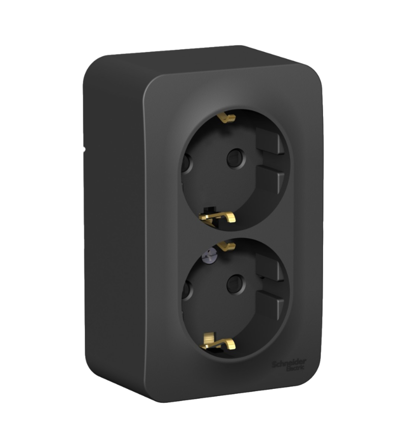 BLANCA О/У РОЗЕТКА двойная с заземлением со шторками, 16А, 250В, АНТРАЦИТ — высококачественная наружная двойная розетка, оснащённая заземлением и защитными шторками. Предназначена для безопасного подключения электрических приборов с максимальной силой тока до 16 ампер и напряжением 250 вольт. Тёмный антрацитовый цвет придаёт изделию современный и стильный вид, гармонично вписывающийся в интерьер как жилых, так и коммерческих помещений.