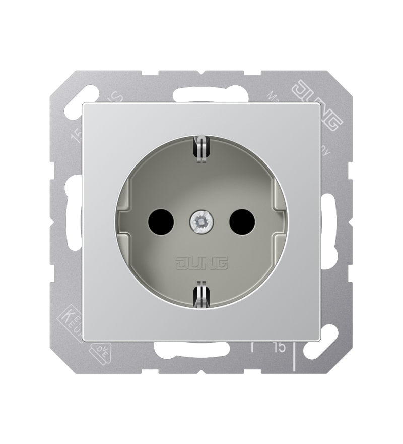 Штепсельная розетка SCHUKO JUNG A500 16А / 250В с пружинными зажимами, дюропласт и алюминий предназначена для надёжного и безопасного подключения электроприборов в бытовых и коммерческих помещениях. Эта розетка обеспечивает высокую электрическую прочность и удобство монтажа благодаря инновационной системе пружинных зажимов, что гарантирует стабильный контакт без необходимости использования винтов.
