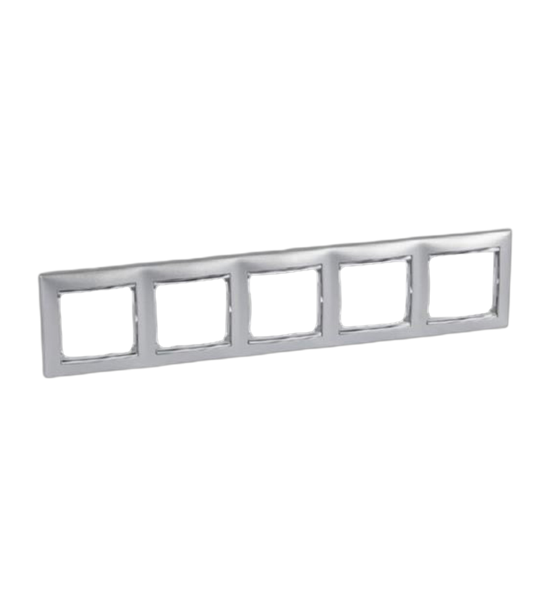 Рамка Valena на 5 постов, вертикальная/горизонтальная, алюминий/серебро – современное и стильное решение для оформления электроустановочных изделий в вашем доме или офисе в Минске и по всей Беларуси. Изготовленная из высококачественного алюминиевого сплава с элегантным серебристым покрытием, рамка обеспечивает надежную защиту и долговечность при эксплуатации.