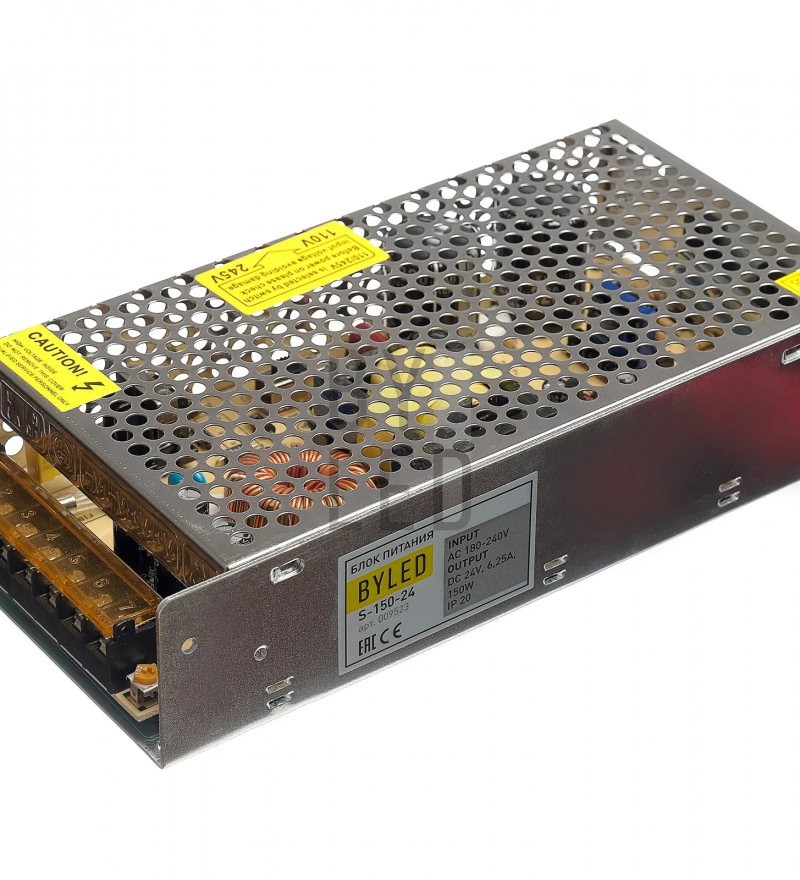 Блок питания Byled S-150-24 (150W, 24V) представляет собой надёжный импульсный источник питания с выходным напряжением 24 В и мощностью 150 Вт. Он предназначен для использования в системах с LED-лентами и промышленной автоматикой, где требуется стабильное и эффективное электропитание.