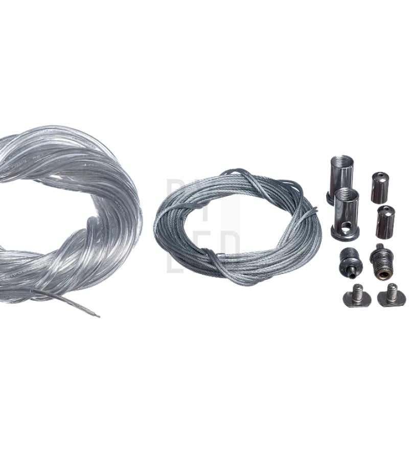 Купить комплект подвесов для светодиодного профиля/трека с прозрачным кабелем длиной 4000 мм можно в Минске с доставкой по Беларуси. В наличии оригинальный товар. Самовывоз доступен из торгового центра Ленинград.