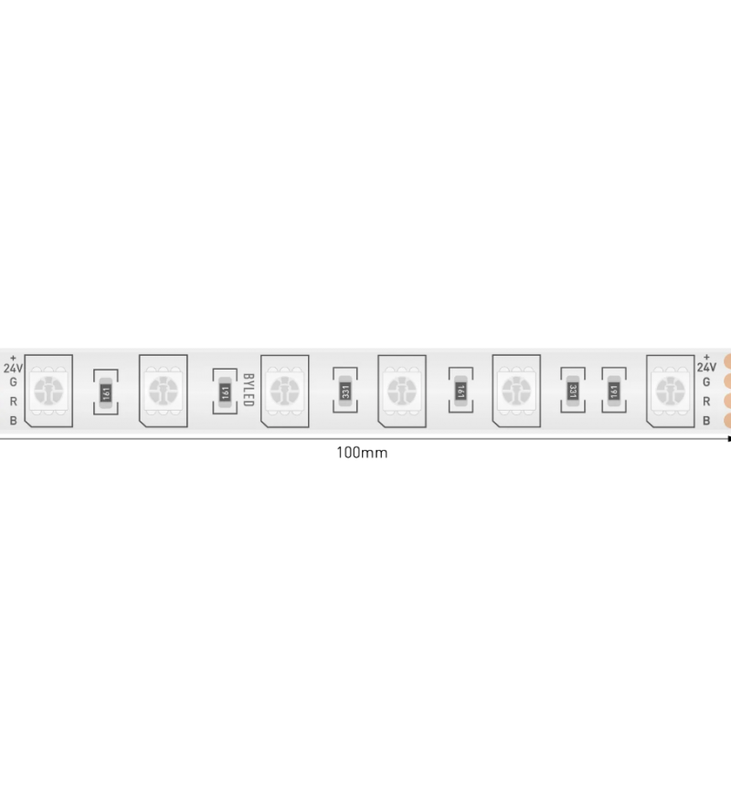 Светодиодная лента Byled PRO+ SMD5050, 60 LED/м, 14.4 Вт/м, 24В, IP66, Цвет: RGB — это универсальное и мощное решение для эффектного и яркого освещения с возможностью смены цвета. Благодаря светодиодам типа SMD5050, лента обеспечивает высокую яркость и сочные цвета, что делает её идеальной для декоративного и функционального освещения в помещениях и на улице.