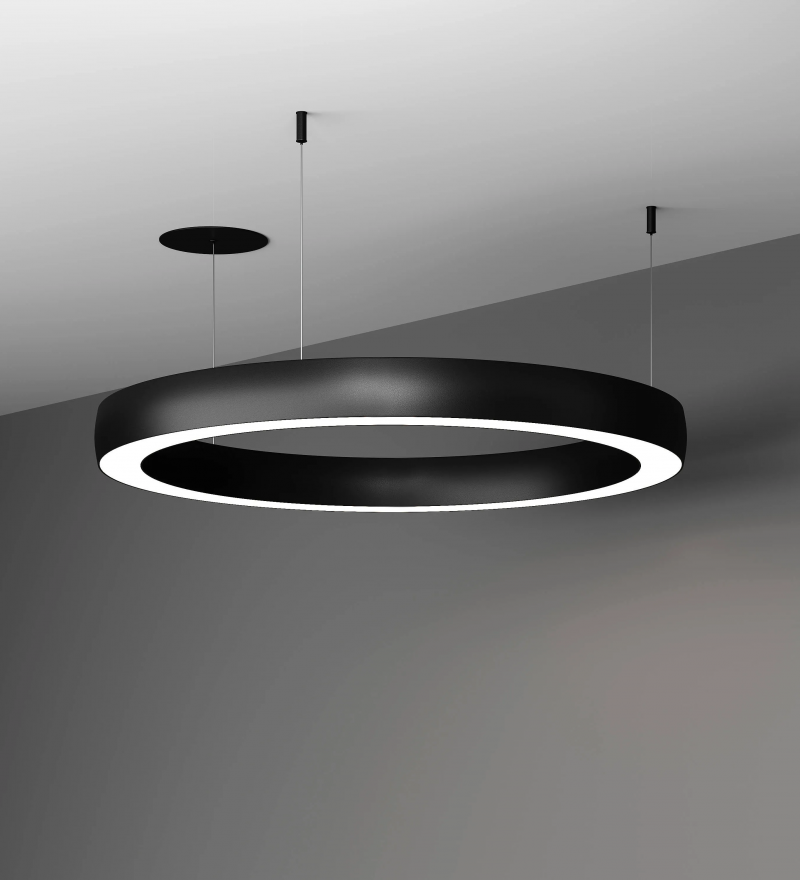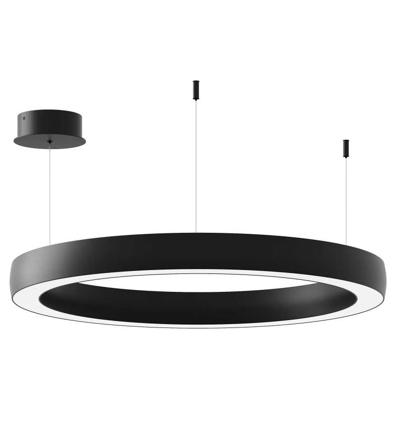 Черный корпус светильника выполнен из прочных и аккуратных материалов, гармонично вписывается в интерьер в стиле хай-тек, лофт или минимализм, добавляя акцент и элегантность. Диаметр подвесного светильника составляет 600 мм — оптимальный размер для организации центрального или декоративного освещения в помещениях различного назначения: гостиных, кухонь, офисов, кафе или торговых залов.