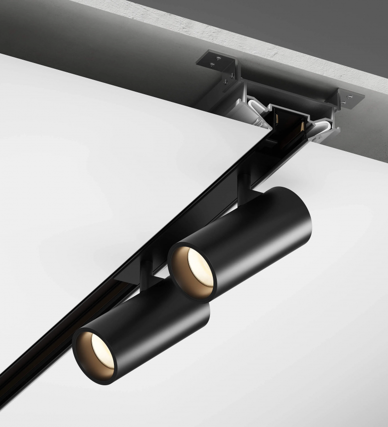 Профиль Gravity-MG15 предназначен для скрытого монтажа и идеально подходит для натяжных ПВХ-потолков. Он обеспечивает надежную фиксацию шинопровода, минимизирует визуальное воздействие, при этом сохраняя возможность дальнейшего технического обслуживания и замены светильников.