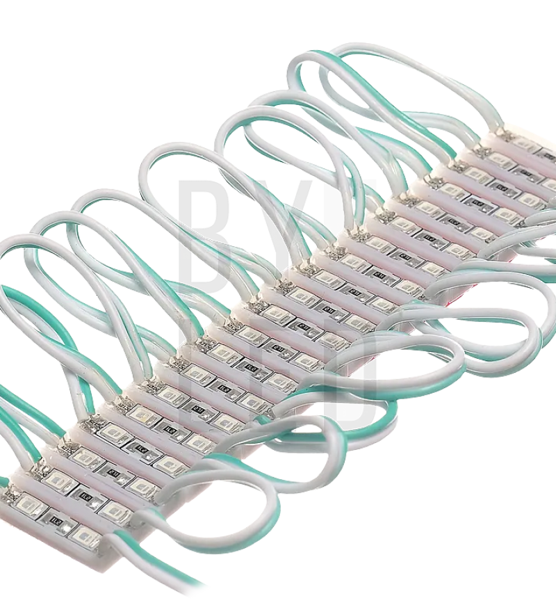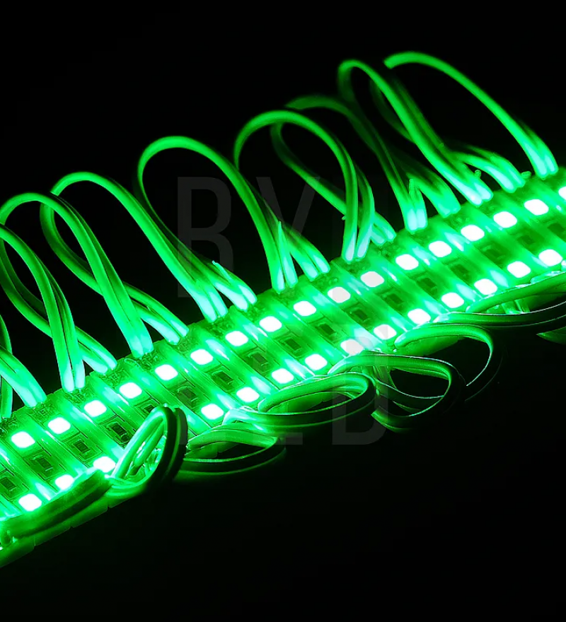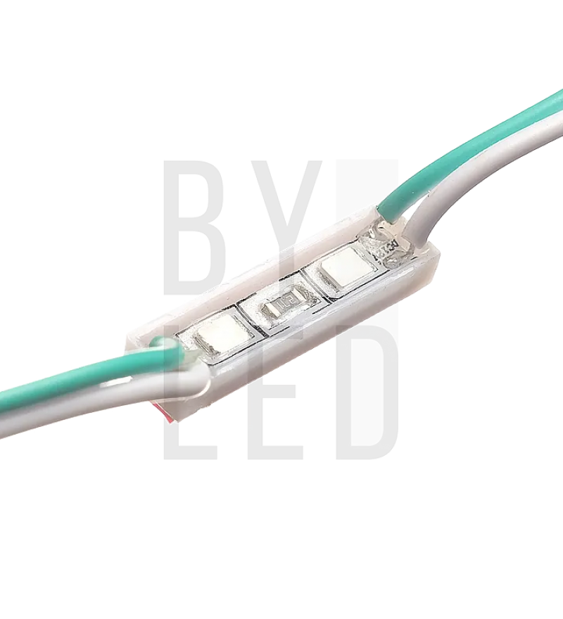 Светодиодный модуль Byled SMD2835, 0.4W, 120°, 12V, Цвет: Зеленый — компактный и энергоэффективный модуль для разнообразных осветительных решений. Он идеально подходит для подсветки рекламных конструкций, вывесок, декоративных элементов и других объектов, требующих равномерного и яркого освещения.